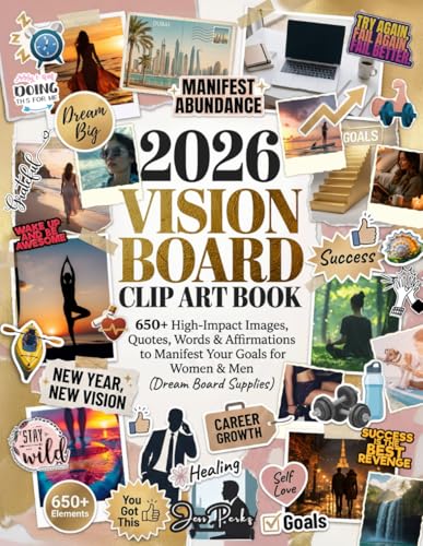 Specification: 2026 Vision Board Clip Art Book: 650+ High-Impact Images, Quotes, Words & Affirmations to Manifest Your Goals for Women & Men (Dream Board Supplies) (Manifest Your Dream Life) Paperback – December 24, 2025