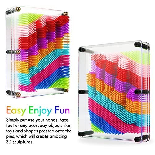 3D Pin Art Toy, Large Size 6” X 8”Unique 3D Pin Art Board for Kids & Adults (Rainbow, Plastic)