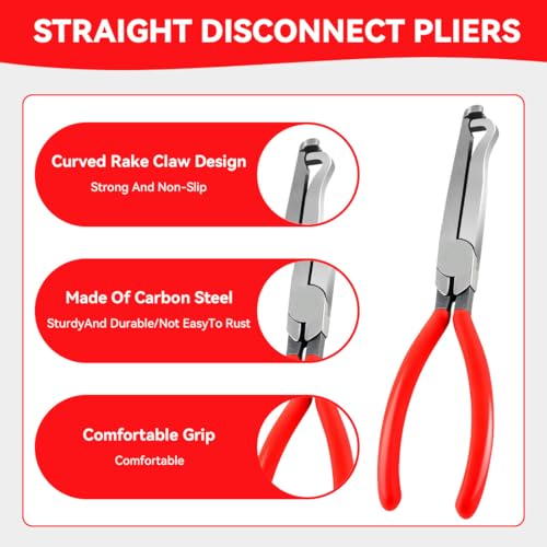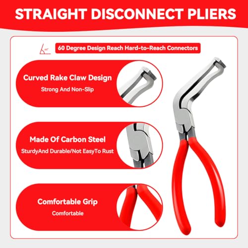 Specification: 4 Pieces Automotive Electrical Disconnect Pliers Kit, High-Carbon Steel Connector Separator with Straight & 60° Pliers, Hose Clamp Plier, Plug Release Tool and Wire Terminal Removal in Storage Box