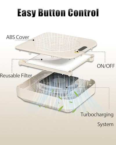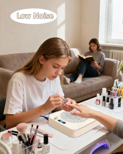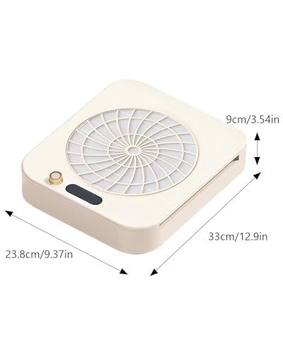 Compact and Portable Design: Size of nail dust collector quiet is 11.06×9.21×3.54 in.This space saving nail dust extractor fits on small manicure tables, enables easy transportation between home and salon, and stores conveniently in beauty station drawers or carrying cases.Every modern nail table with dust collector functionality should integrate this compact unit to create a complete, workstation in minimal space
