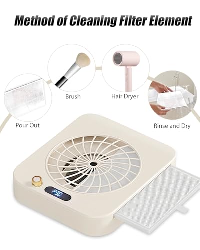 Green Reusable Filter System: Featuring two washable high-efficiency filters, this nail dust vacuum eliminates ongoing filter replacement costs, reduces environmental waste from disposable filters, and maintains consistent suction power through simple hairdryer cleaning maintenance every 3-4 months.This innovative nail fan dust collector system represents significant advantage for high-volume salon owners and mobile technicians who perform multiple services daily