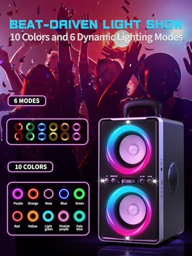 【10 RGB Light】10 vibrant colors + 7 beat-sync modes—light up your party! One-button control for easy switching. Portable bluetooth beats speaker turns game nights, pool parties & gatherings into electrifying audio-visual vibes!