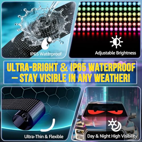 Specification: Devil Eyes Light 2PC for Windshield-23.42×4.72IN HCYHNB Programmable LED Eyes [Advanced Chip, 100% Synced Dual Screen] 5V USB Powered, App/Remote Control, Windshield Eyes Animated for Cars/Trucks/SUVs