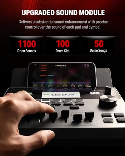 Powerful Sound Engine – Features 1,100 voices, 100 drum kits, and 50 demo tracks, Donner DED-300 Pro electronic drum set adds a built-in top slot for phone/tablet use. Compatible with the Donner Play app for expanded training and customization.