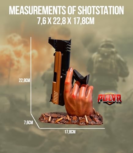 📸 A MUST-HAVE FOR GAMERS AND STREAMERS WHO WANT TO STAND OUT If you stream or simply want to impress with your gaming station, this stand adds an incredible visual detail to your background. Its hyper-realistic sculpted hand and bullet details make it a unique accessory that will make your setup look like that of a true professional.