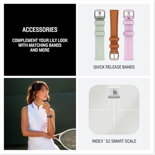 Specification: Garmin Lily® 2 Active, Small and Stylish Smartwatch, Built-in GPS, Hidden Display, Patterned Lens, Up to 9 Days Battery Life, Lunar Gold with Bone Silicone Band