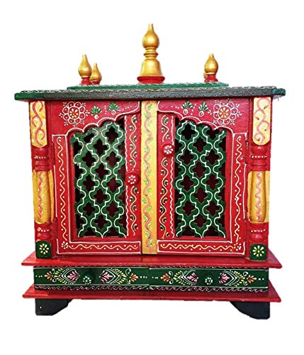 Specification: GLOBAL TECH Wooden Pooja Temple/mandir with Magnetic Door for Home & Office size-18x9x22 inch (Red & Green)
