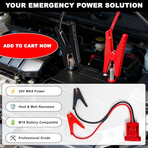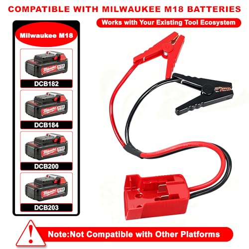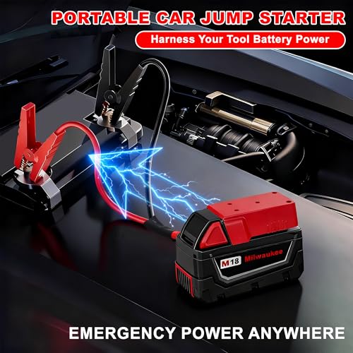 【Universal Compatibility with M18 & Batteries】This advanced car battery jump starter adapter seamlessly works with Milwaukee M18 18V batteries. It also serves as a battery adapter and power wheels battery adapter, transforming compatible tool batteries into a portable emergency power source. This car jumper starter portable solution eliminates needing another vehicle, perfect for cars, SUVs, and trucks. (Battery not included)