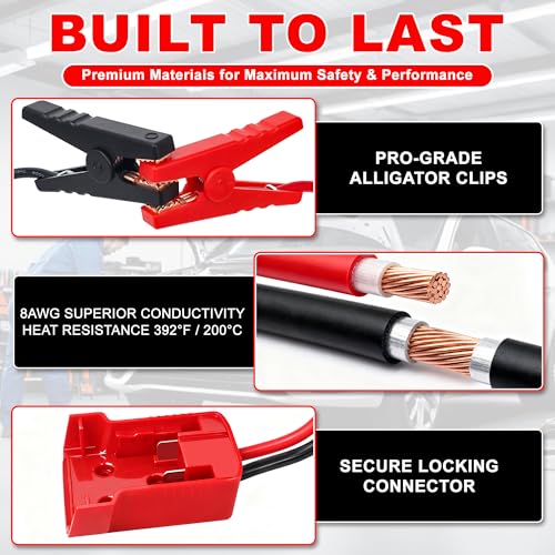 Specification: Jumper Cables for Milwaukee M18 Jump Starter, 8AWG Heavy-Duty Car Jumper Starter Portable with Alligator Clips, 2FT Silicone Automotive Booster Cable, Heat Resistance 392°F