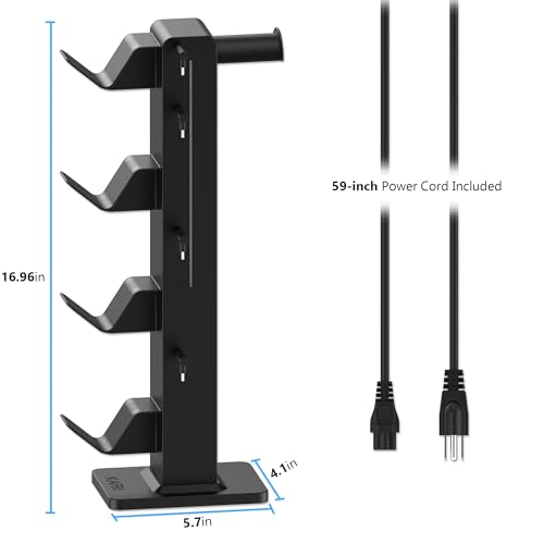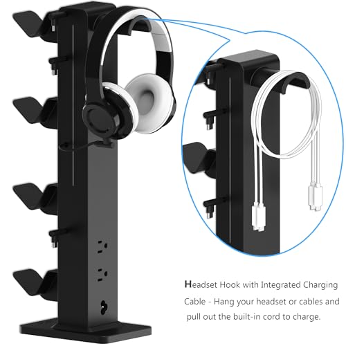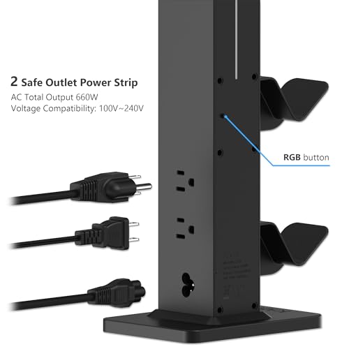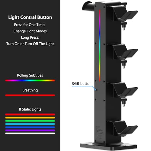 Specification: KAFRI RGB Gaming Headphone Stand with 8 Light Modes, Controller Holder for Desk – with Retractable Charger Cable – 2 Outlet Power & 4 Type-C Charging Port for PC Gamer Accessories(Black)