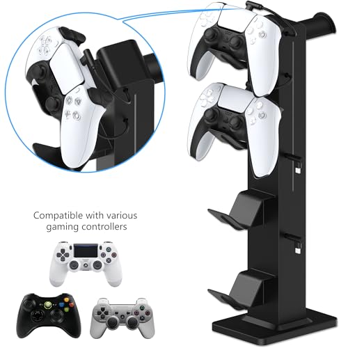 【All-in-One Storage for 4 Controllers & Headset – Save Space & Stay Organized】 Tired of cluttered gaming stations? This 3-in-1 stand keeps everything in one place! It securely holds up to 4 game controllers—compatible with Xbox One controller, PS5, and more—plus a dedicated PS5 headset stand slot. Designed as the ultimate game controller stand, it helps you organize your gear, save space, and protect your valuable gamer accessories from damage or misplacement.