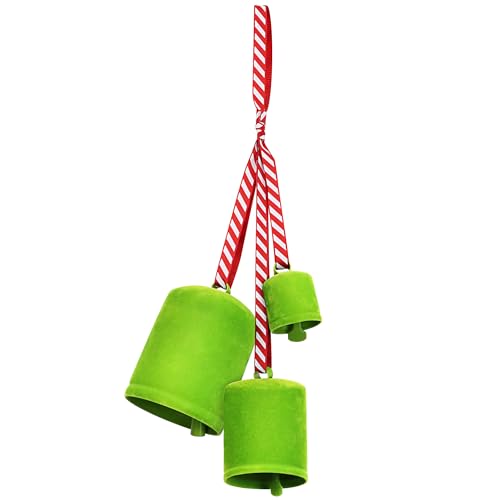 KPCB Tech Christmas Bells for Decoration, Green Whimsical Bells Hanging Decoration Set of 3