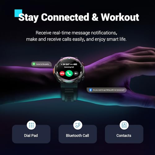 Specification: Military Smart Watch for Men(Answer/Make Calls),Outdoor Smartwatch with 100 Days Battery/Flashlight/Compass/Heart Rate/SpO2/Sleep Monitor/2 Straps, Rugged Fitness Watch for iPhone/Android Phones