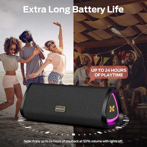 【 USB-C Port & Long Playtime 】 With its USB-C port compatibility, the portable speaker fully recharges in 2.5 hours and offers up to 24 hours of playback at 50% volume—keeping the music going all day.