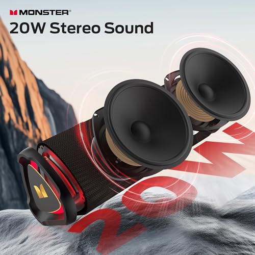 Specification: Monster Prism Portable Bluetooth Speaker, Wireless Speakers with 20W Stereo Sound, IPX6 Waterproof, 24H Playtime, Bluetooth 6.0, TWS Pairing, AUX & TF-Card Input, for Home/Outdoors/Beach/Travel