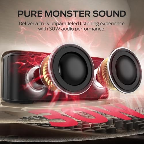 Monster Shock Plus Bluetooth Speaker, Portable Speaker with 30W Stereo Sound, 15H Playtime, Bluetooth 6.0, Support AUX, TF, Wireless Stereo Pairing, IPX6 Waterproof Speaker for Home, Outdoor, Travel