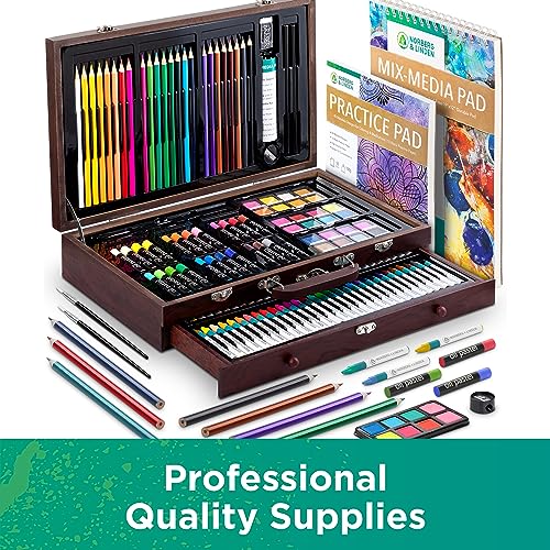 Specification: Norberg & Linden 144-Piece Art Set in Wooden Box with Drawer – Art Set for Adults, Teens, Kids – Premium Art Supplies – Includes Watercolors, Oil Pastels, Crayons, & More
