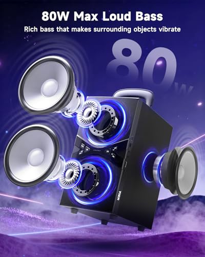 Party Bluetooth Speaker:80W Peak Large Stero Sound for Outdoor,Deep Bass,TWS,Loud with Lights,Portabe Wireless Big Speakers with Long Playtime,House,Projector,Movie