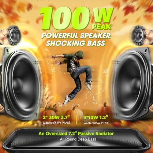 Specification: Portable Bluetooth Speaker 100W(Peak) Loud with Deep Bass, W-KING IPX6 Waterproof Speakers Bluetooth Wireless, 60W Ex-large Passive Radiator/40H/EQ/Dual Pairing/TF/AUX, Party Big Large Outdoor Boombox
