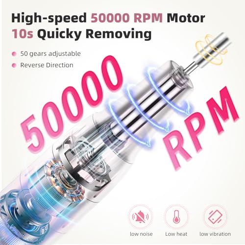 Specification: Professional Electric Nail Drill Machine, KYOEON Portable 50000 RPM Nail Drill Tools Kit Supplies with Accessories for Women High Speed Nail File Art Tools for Nail Techs or Salon Home