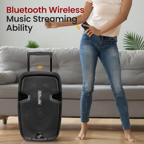 Specification: Pyle Portable Bluetooth PA Speaker System – 1000W Wireless Karaoke Loudspeaker with 12” Subwoofer, USB/SD/MP3/FM – Includes Dual UHF Mics, Remote, Rolling Wheels – Ideal for Parties, Events, Outdoors