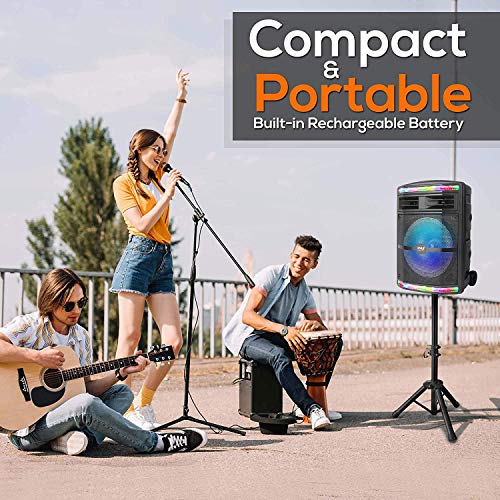 Pyle Portable Bluetooth PA Speaker System – 600W Bluetooth Speaker Portable PA System W/ Rechargeable Battery, Party Lights, MP3/USB SD Card Reader, Rolling Wheels – Pyle PPHP1044B