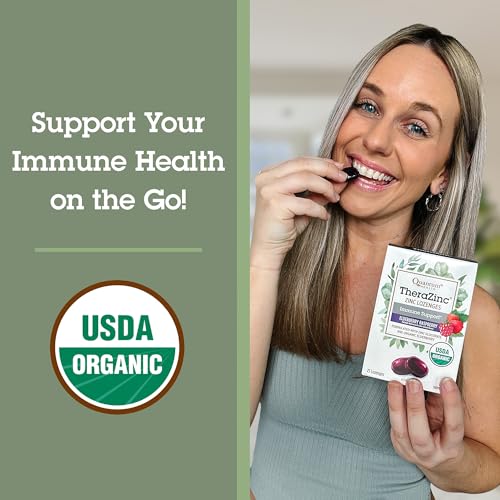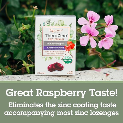 Quantum Health TheraZinc Organic Zinc Lozenges Elderberry & Honey – Immune Support for Adults & Kids 12+ Naturally Flavored Raspberry Fast Relief with No Aftertaste – 25 Count