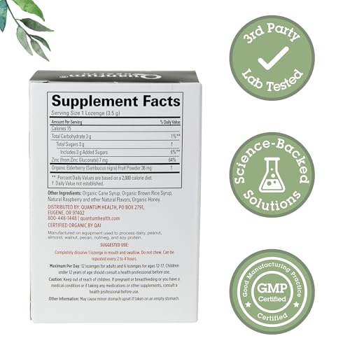 Specification: Quantum Health TheraZinc Organic Zinc Lozenges Elderberry & Honey – Immune Support for Adults & Kids 12+ Naturally Flavored Raspberry Fast Relief with No Aftertaste – 25 Count