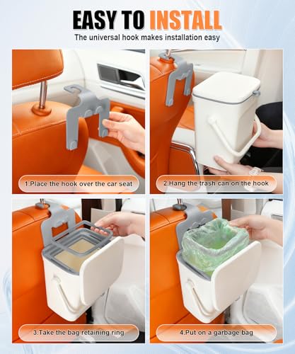 【Multi-Function】It works as a trash can with a ring to secure garbage bags, and the upper part of the hook holds a phone steady for entertainment—great for long drives. The universal hook makes installation easy in 10 seconds—just hang it on the front seat backrest, fitting cars, trucks, SUVs and other vehicle types