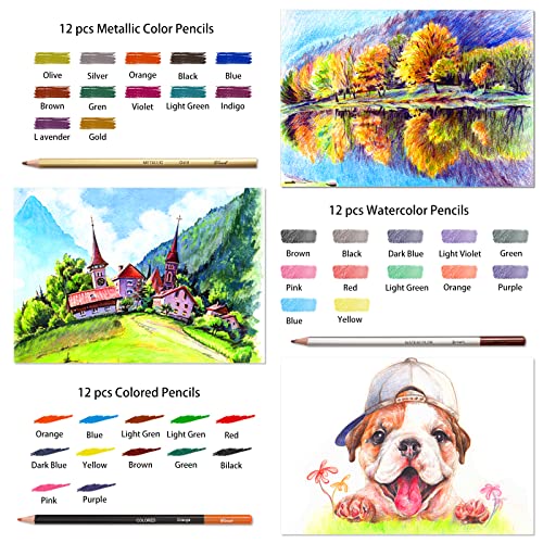 73 Piece Drawing Pencils And Sketch Set – Express your artistic side with the Tioucd art drawing kit. This all in one art supply kit contains different drawing pencils for sketching including graphite, colored, metallic, watercolor, charcoal and other art stuff