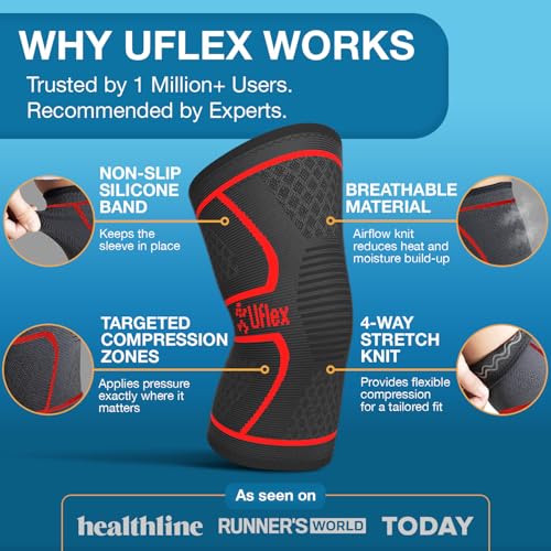 UFlex Athletics Compression Knee Brace for Women & Men Knee Sleeves Support for Sports, Running, Weightlifting, Arthritis, Meniscus Tear, ACL, Hiking, Recovery Support & Fitness