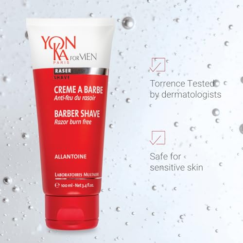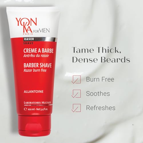 Yon-ka Men’s Barber Shave Cream | Razor Burn Free Shaving Cream | Patchouli & Peppermint | Soothes Sensitive Skin | Allantoin & Vitamin B5 | for Thick Beards & Smooth Shaves | 3.4 fl oz
